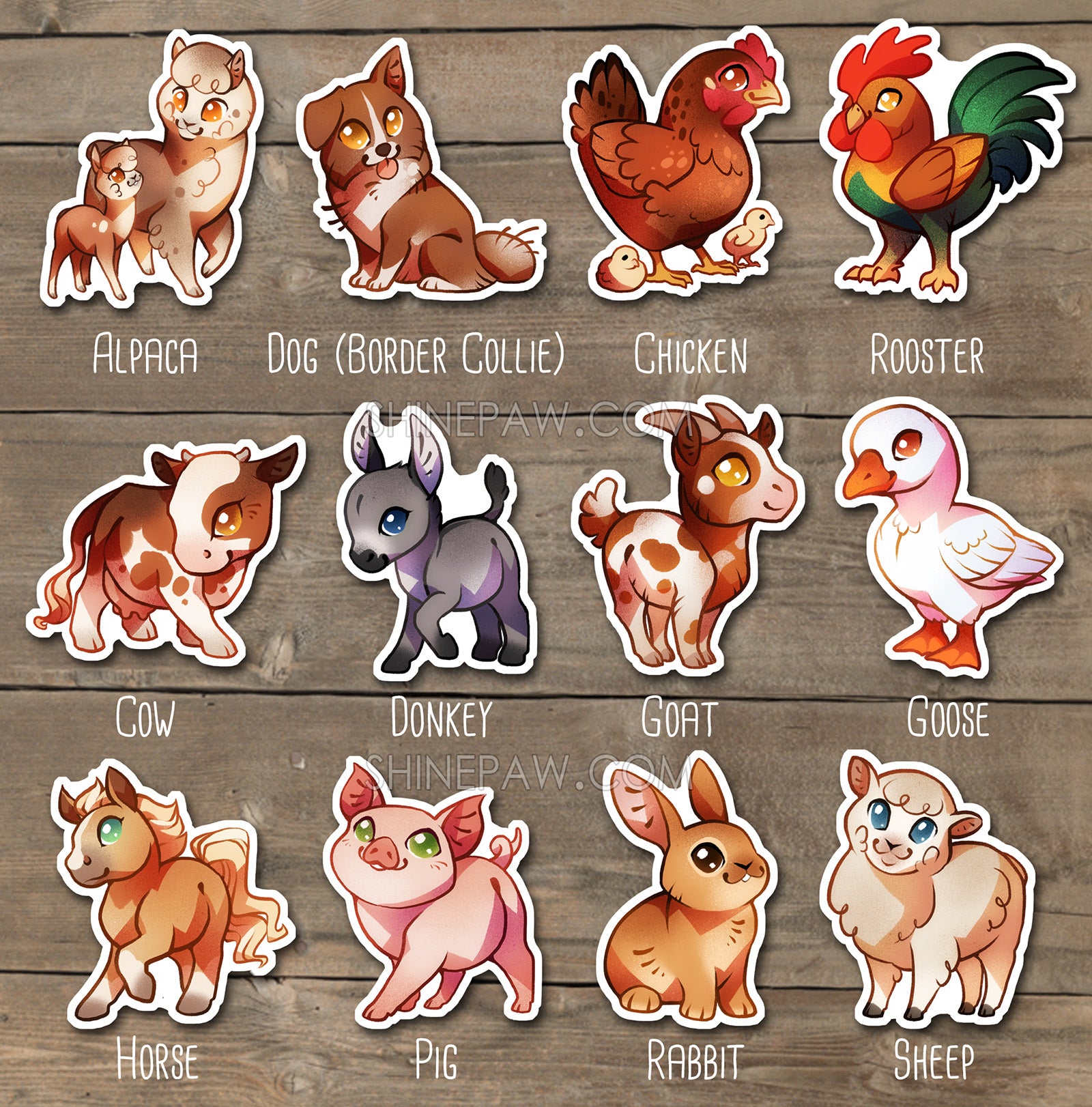 Cute and nicely drawn colorful Farm Animals stickers for all your needs! These stickers are machine cut and printed on durable, glossy vinyl. Stick them to anything, they are water resistant and can be removed cleanly.