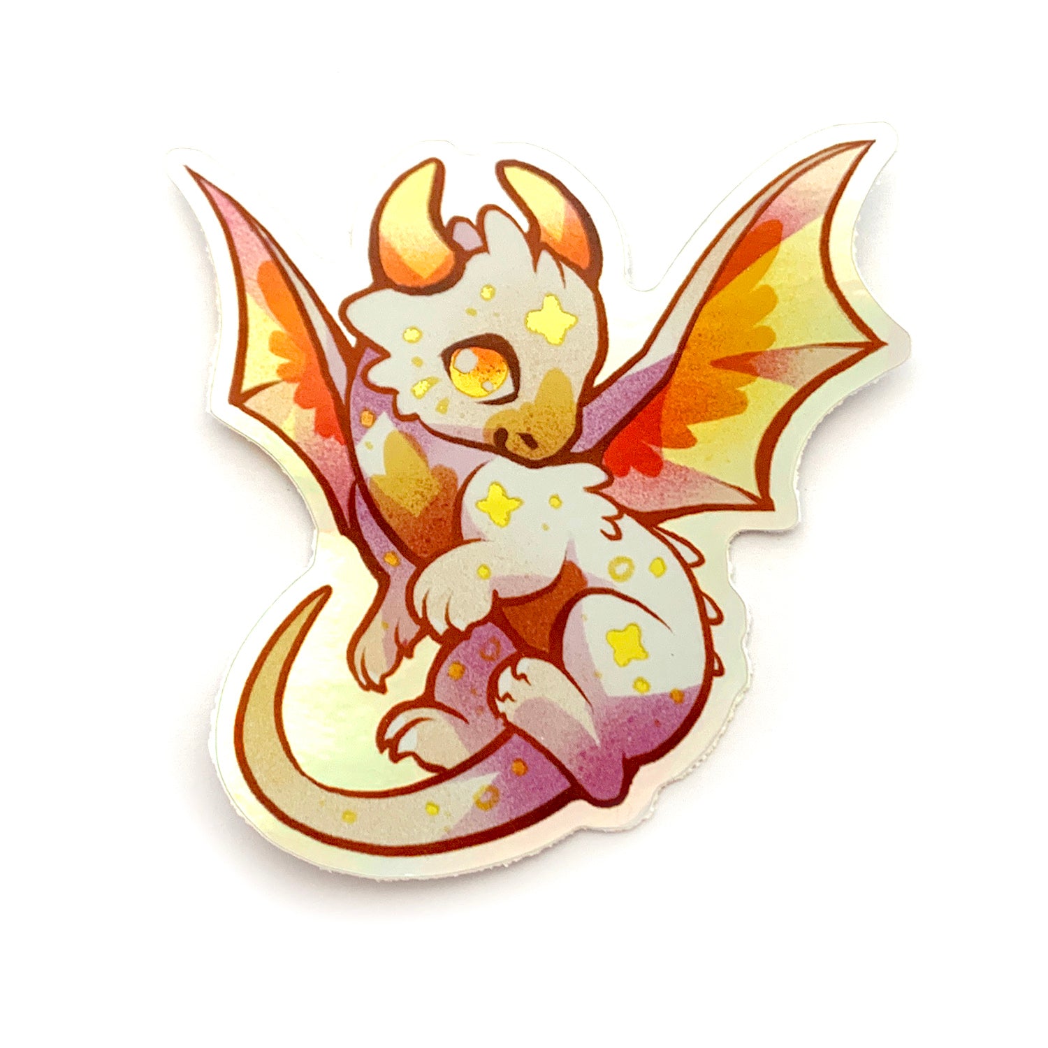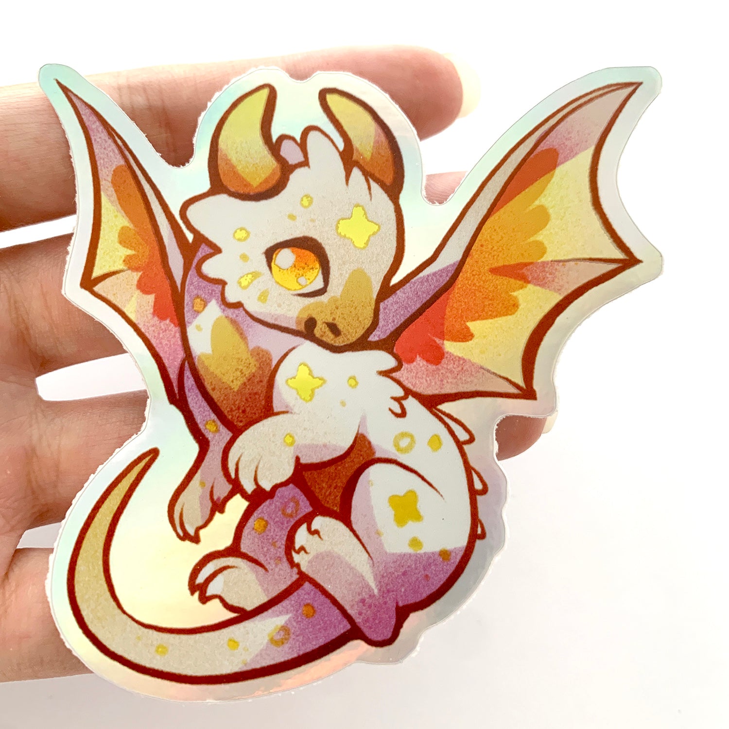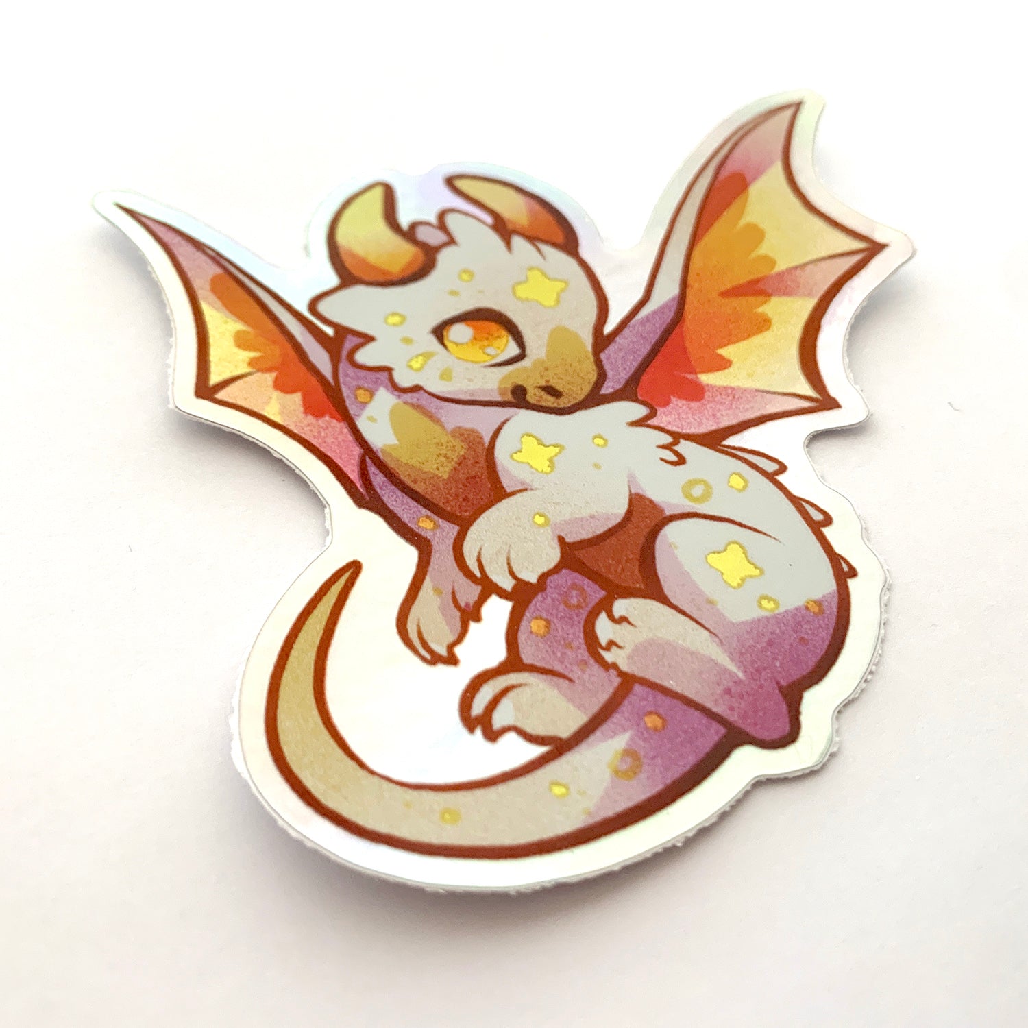 Cute and nicely drawn colorful Holographic Comet Dragon stickers for all your needs! These stickers are machine cut and printed on durable, glossy vinyl. Stick them to anything, they are water resistant and can be removed cleanly.
